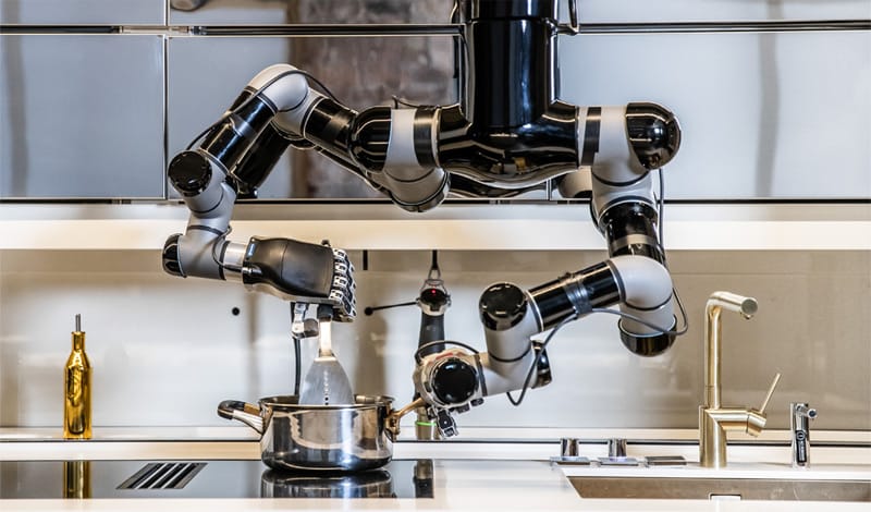 The long-term vision extends to cooking, creating an "internet food court" where robots could make custom meals cheaper than groceries.