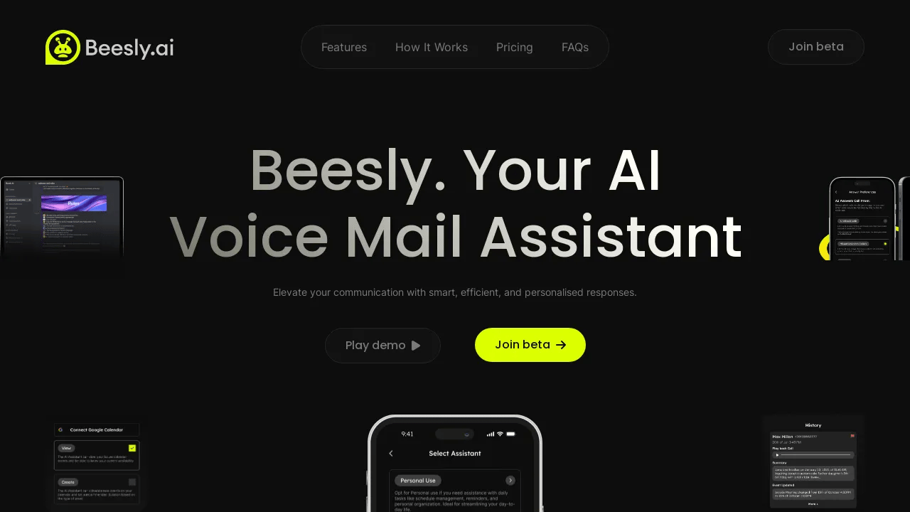Beesly is an advanced AI phone call assistant designed to revolutionize voicemail and phone call handling. It uses cutting-edge AI technology to understand and respond to natural language during phone calls, providing smart, efficient, and personalized responses.