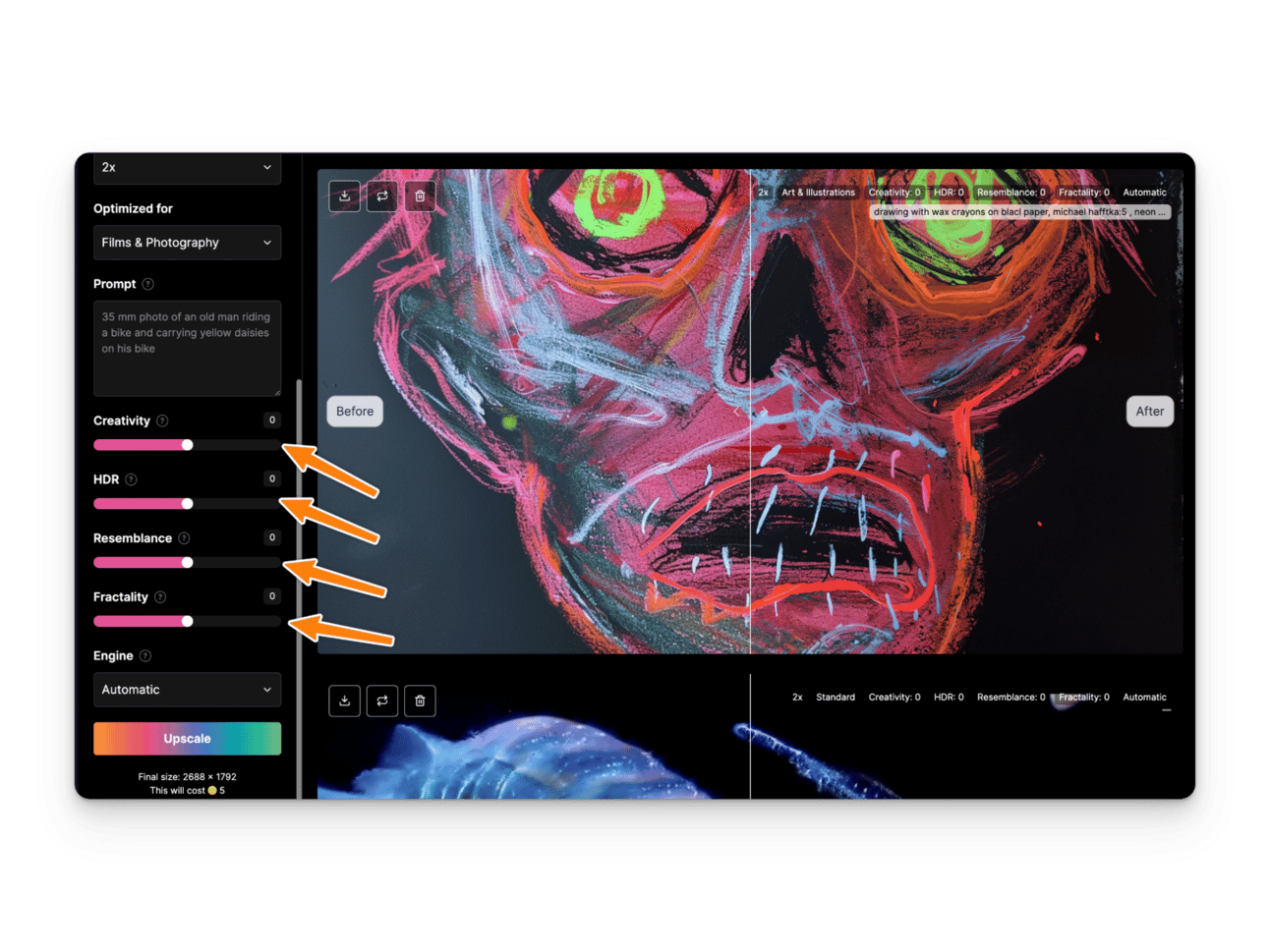 You can also change the processing via Creativy, HDR, Resemblance, and Fracality. They each have their differences. We recommend that you click the “I” icon to understand how each of these settings works.