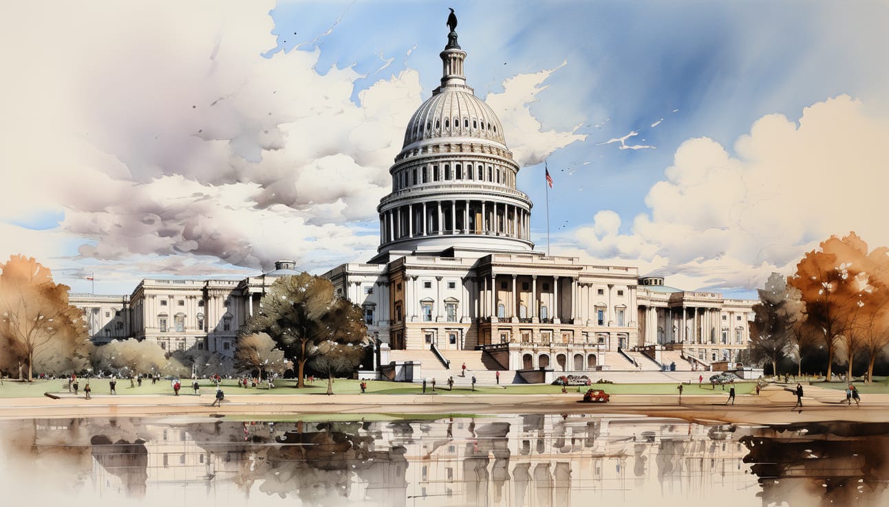 Prompt: US congress building, art, pencil drawing outline --ar 7:4 --s 750