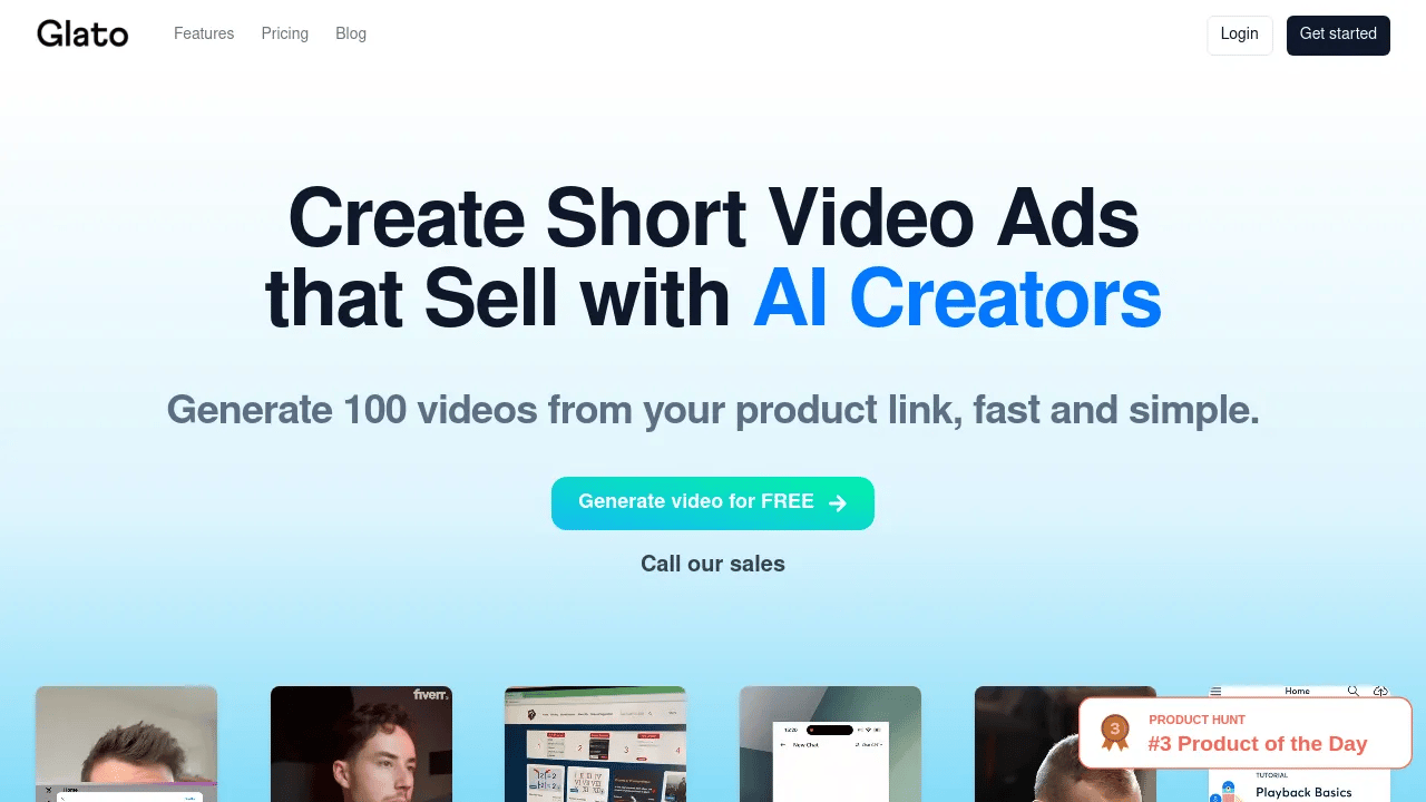 Glato is an AI-powered tool that enables businesses to create short video ads quickly and efficiently. By simply providing a product link, users can generate up to 100 videos, significantly reducing the time and effort compared to hiring creators.