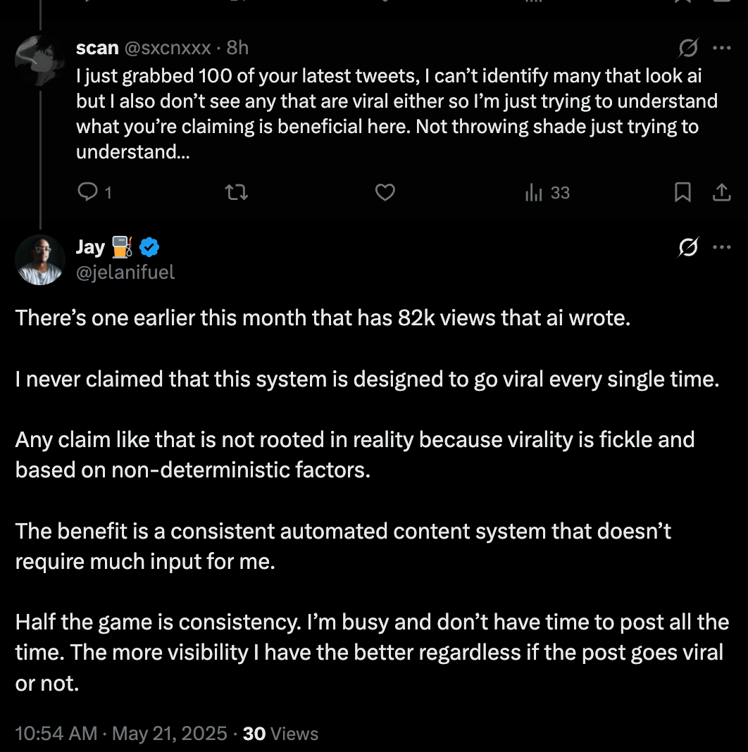 But people don’t see the bigger picture. They assume that I’m just turning my X account into a bot account. That’s not the case.