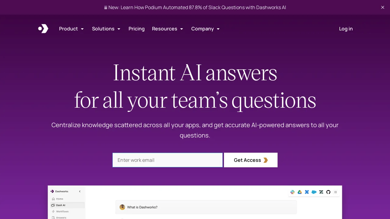 Dashworks AI is an innovative knowledge assistant platform designed to empower teams and streamline workflows. It provides AI-powered search capabilities across a company's internal apps and knowledge sources, allowing users to quickly find answers, create content, and access relevant documents and information.